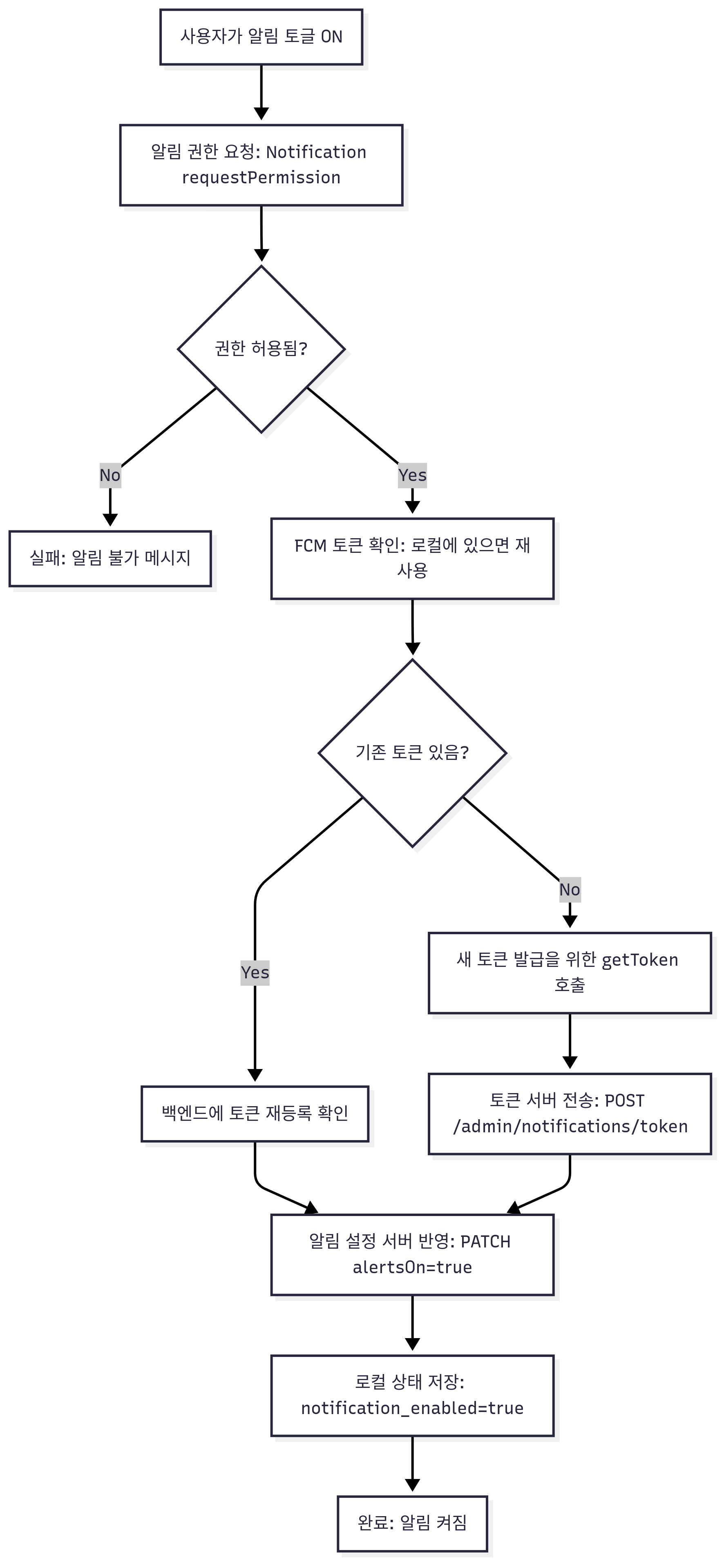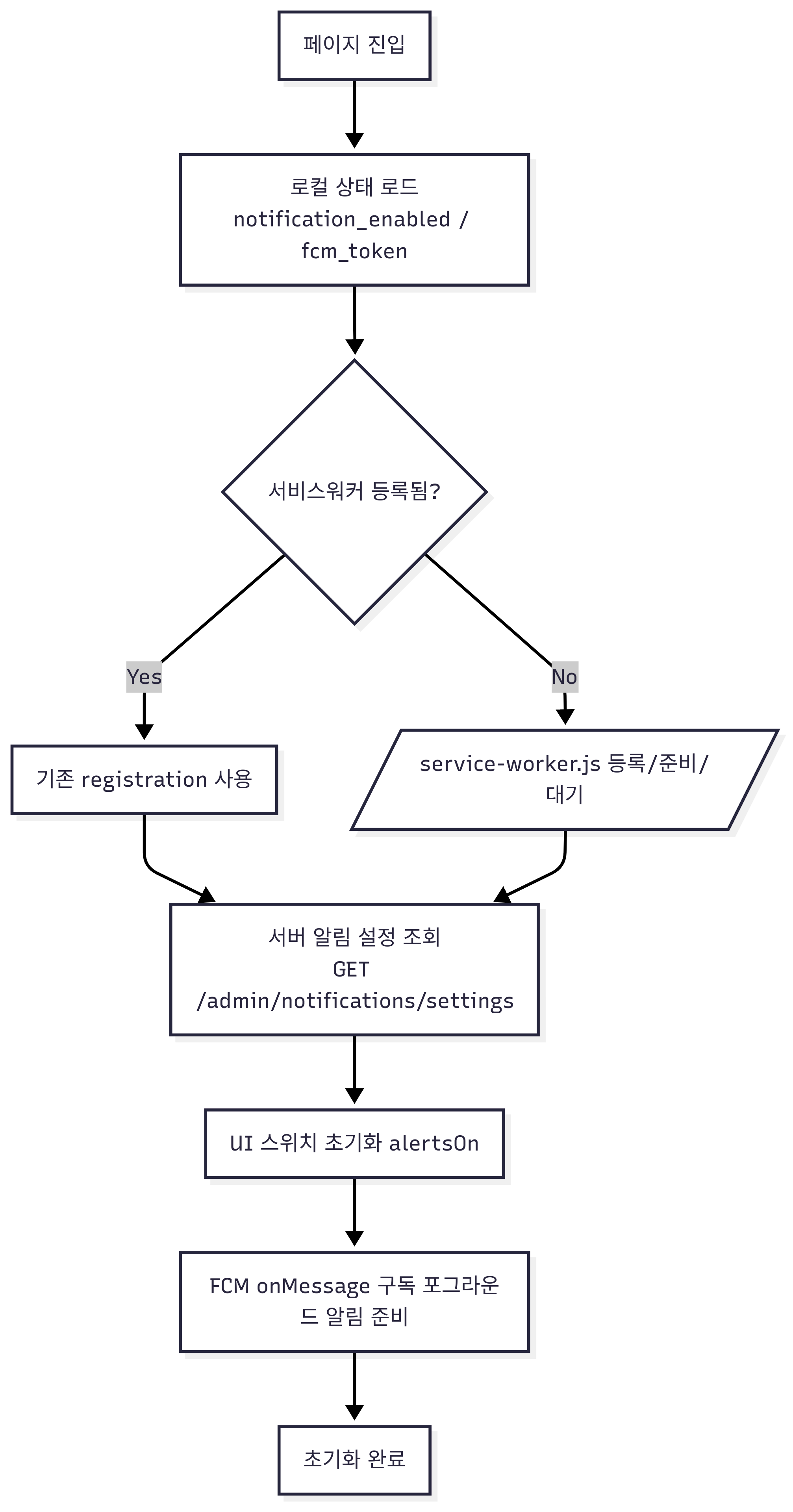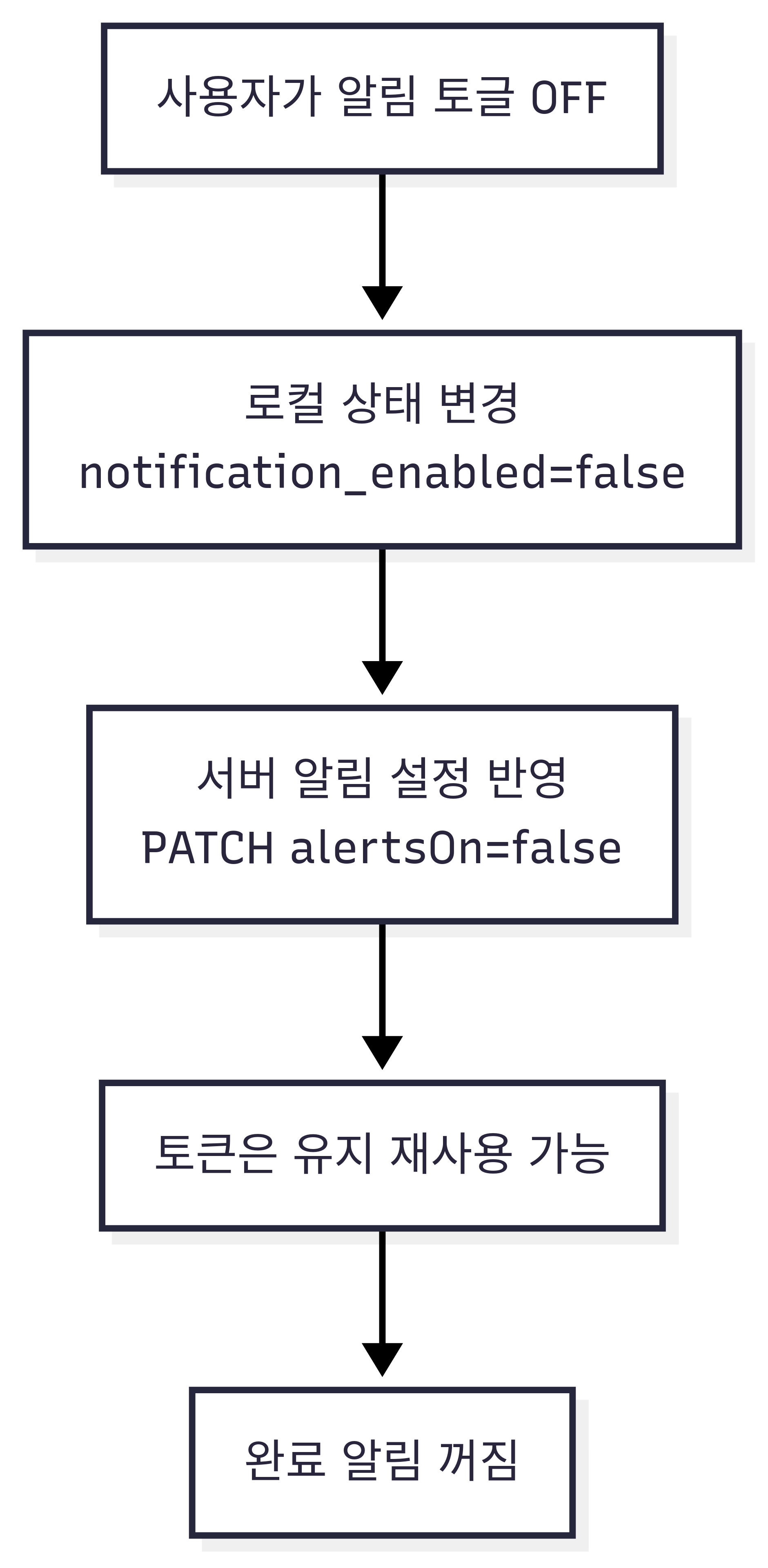 - API를 요청하여 서버 알림 설정을 반영합니다. (그럼 알림이 오지 않아요)