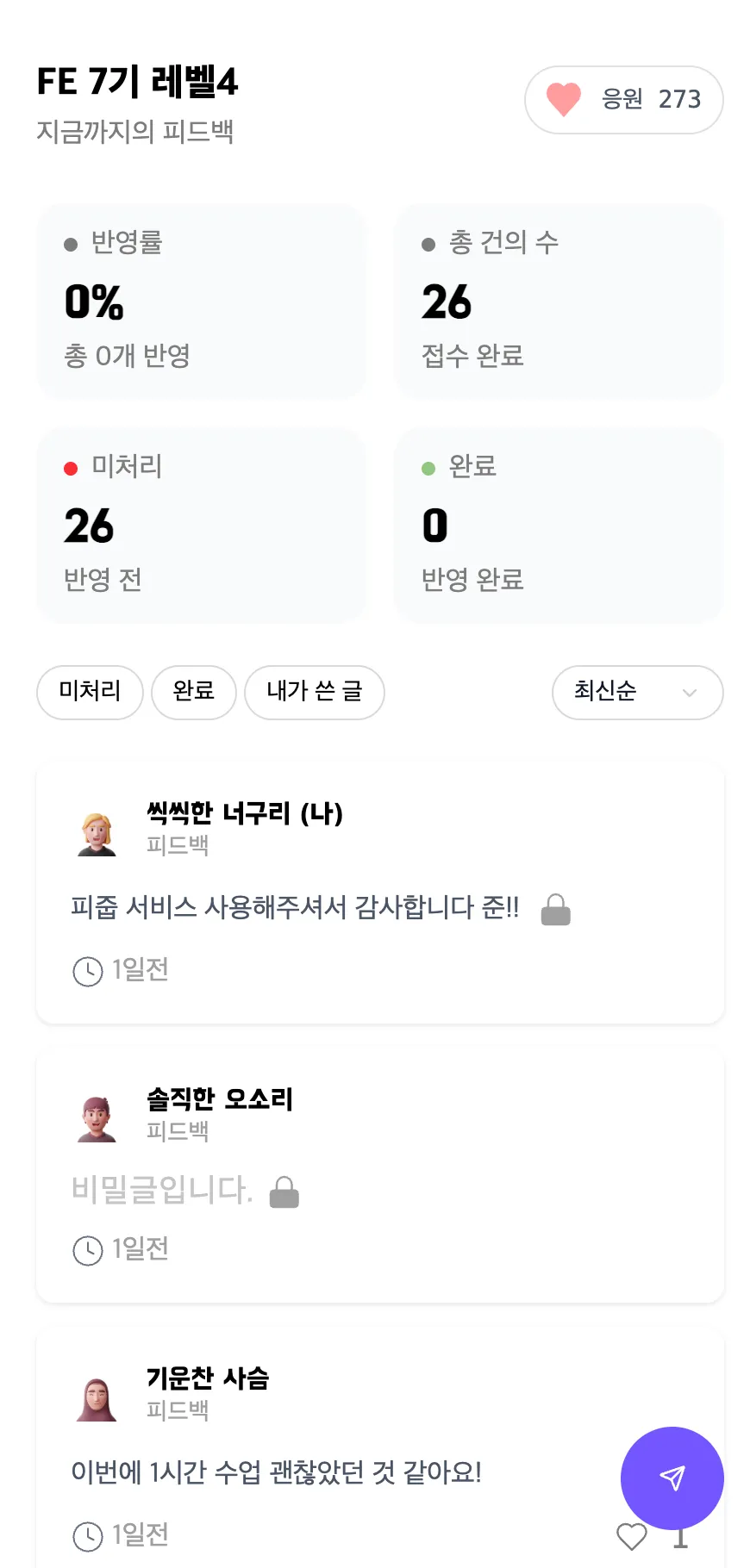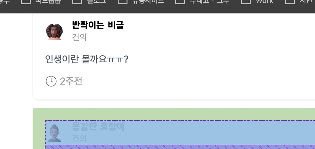 - 무한스크롤 로직에서 새롭게 데이터를 가져올때마다 맨 위에있는 피드백도 재렌더링 하는 문제 발생