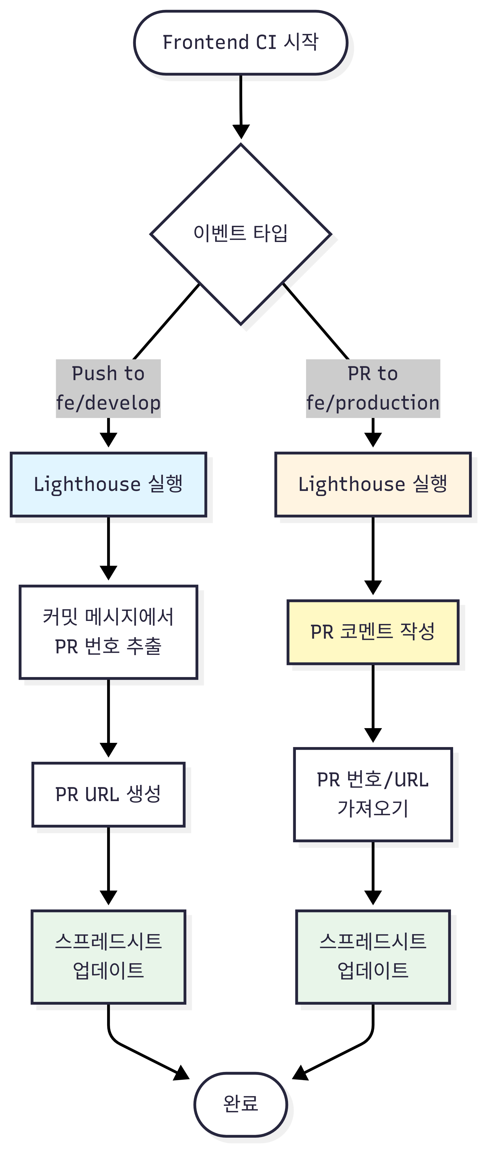 저희 피드줍줍 팀 프론트는 이번에 성능최적화를 진행하게되었습니다. 그런데... 개발자마다 환경이 달라 점수가 들쭉날쭉했고, 바쁠수록 수동 측정은 자연스럽게 밀렸습니다. 이번엔 최적화했겠지 하고 지나갔다가 뒤늦게 라이트하우스 점수가 별로라는 걸 확인하기도 했어요!