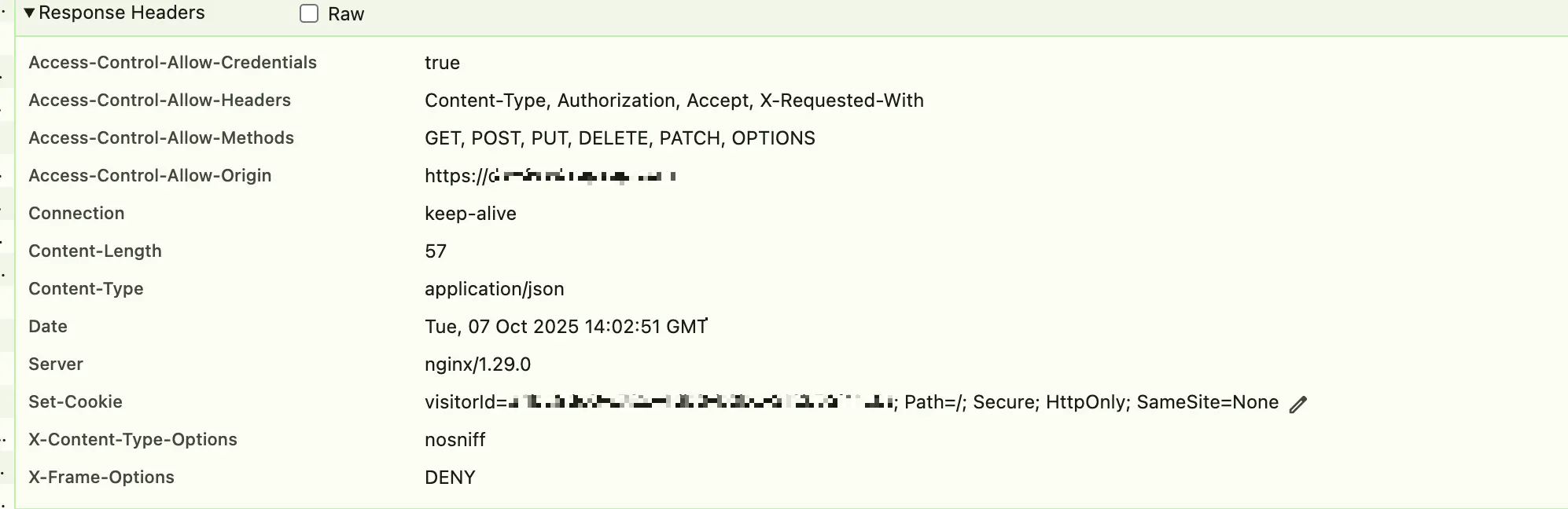 현재 서버에서 내려오는 쿠키는 다음과 같았습니다. Set-Cookie: visitorId=abc123; Path=/; Secure; SameSite=None