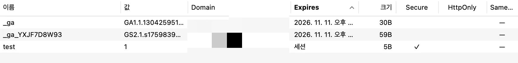 여기에는 Domain 속성이 없습니다. 이 경우 쿠키는 Host-only cookie로 저장됩니다.